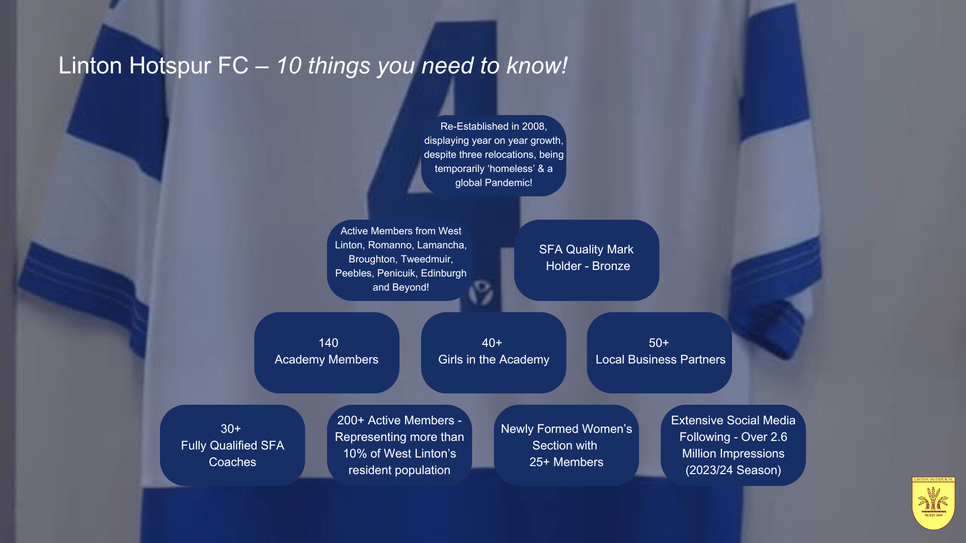 The club is a 'not for profit, voluntary organisation, re-formed in 2008 after disbanding in 1971. Up until this point, the club has been in existence in West Linton for some 43 years. Our Mission